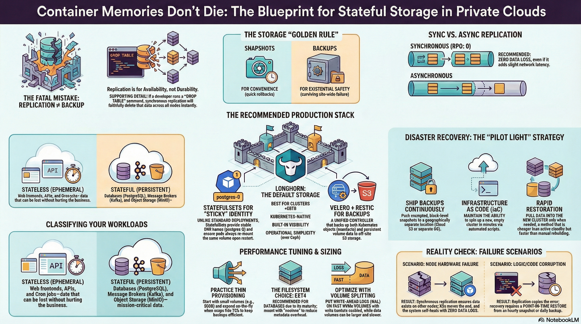 The #1 reason private clouds fail is bad storage architecture. Here's how to run stateful services without losing data.